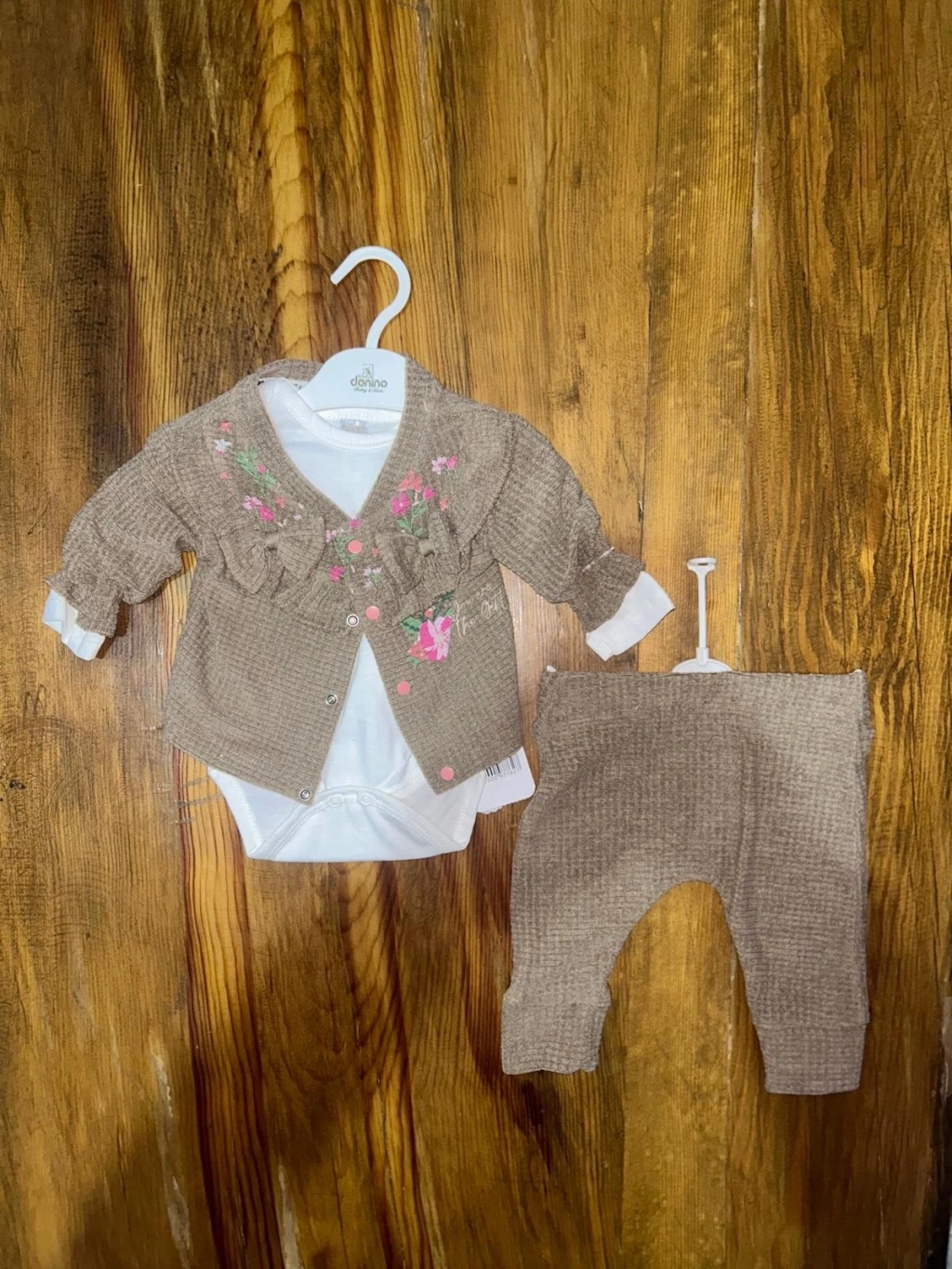 - Bebeğinizin konforu ve şıklığı için tasarlanmış üçlü takım seti.