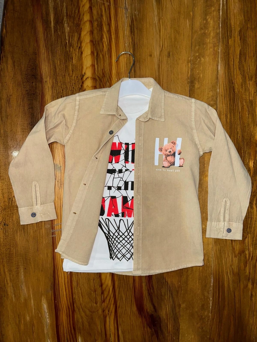 4-8 yaş tişört gömlek kombini vizon