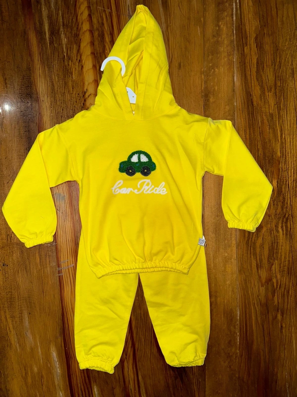 Çocuğunuzun giyimine hareket katacak KAZAX marka araba baskılı sarı takımı şimdi keşfedin!