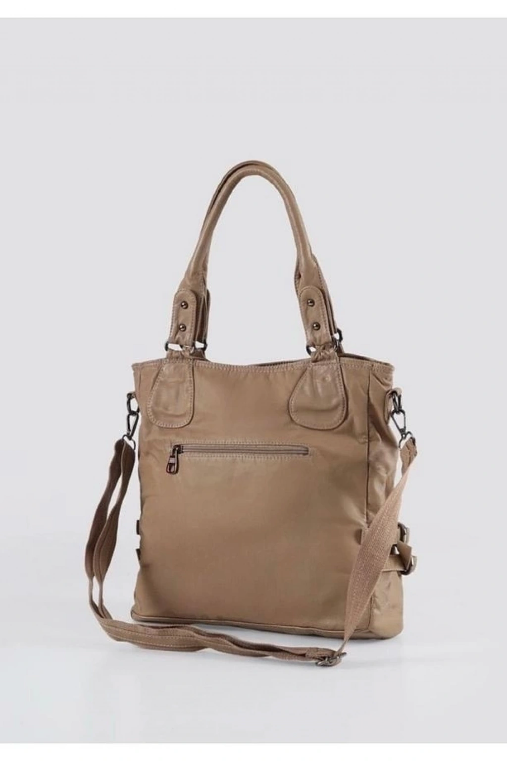 modern tasarımı ve çok yönlü kullanım imkanıyla dikkat çeken bir kadın omuz ve sırt çantasıdır. Yıkama deri malzemesi, zarif bir görünüm ve uzun ömürlü kullanım sunar. Hem omuz çantası hem de sırt çantası olarak kullanılabilen bu model, günlük yaşamınızda pratiklik ve şıklığı bir arada sunar.