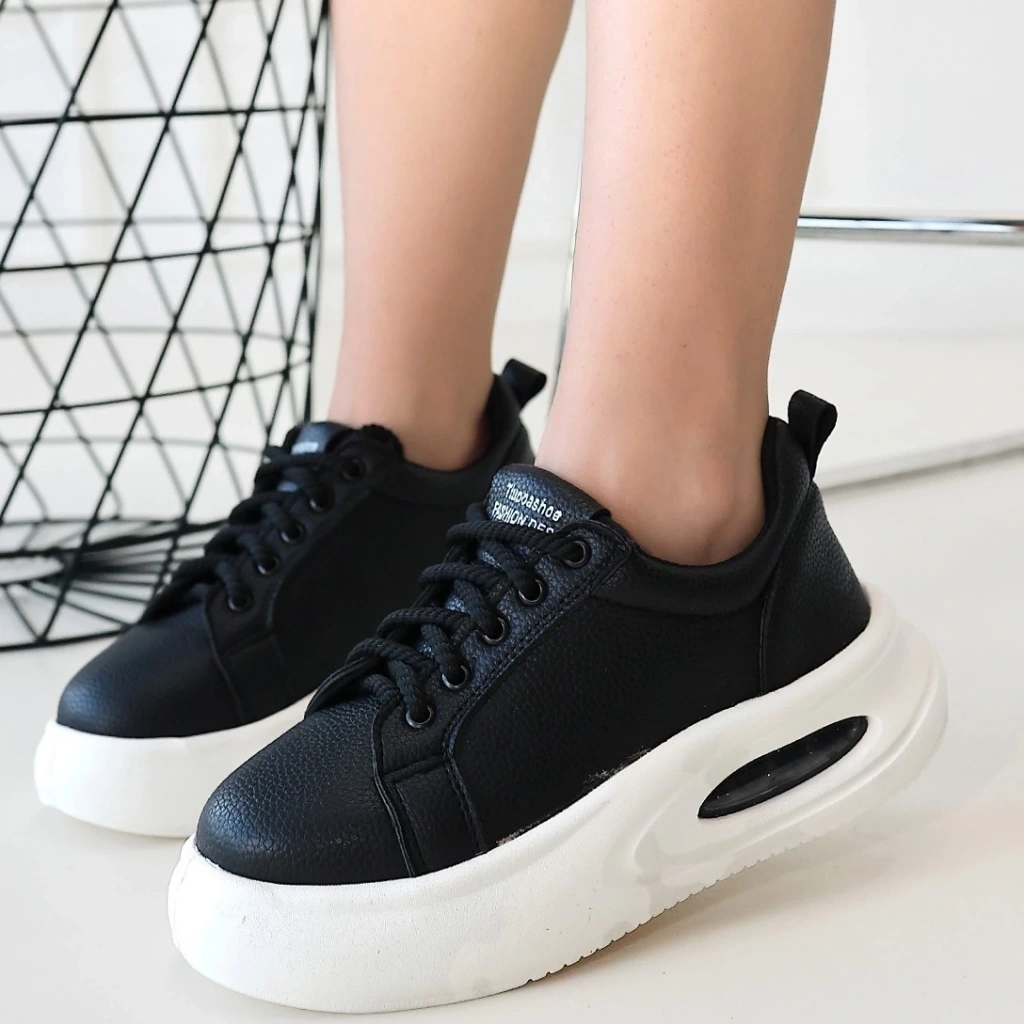 Chris Siyah Cilt Bağcıklı Spor Ayakkabı