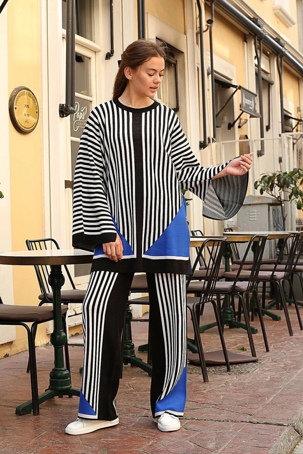 Kadın Giyim kategorisinde yer alan çizgili bisiklet yaka triko takım siyah ile tarzınızı ve konforunuzu bir arada yaşayın.