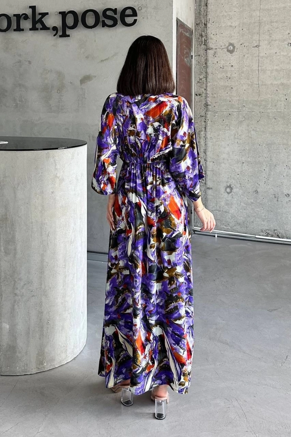 Dokuma baskılı yarasa kol elbise s8124