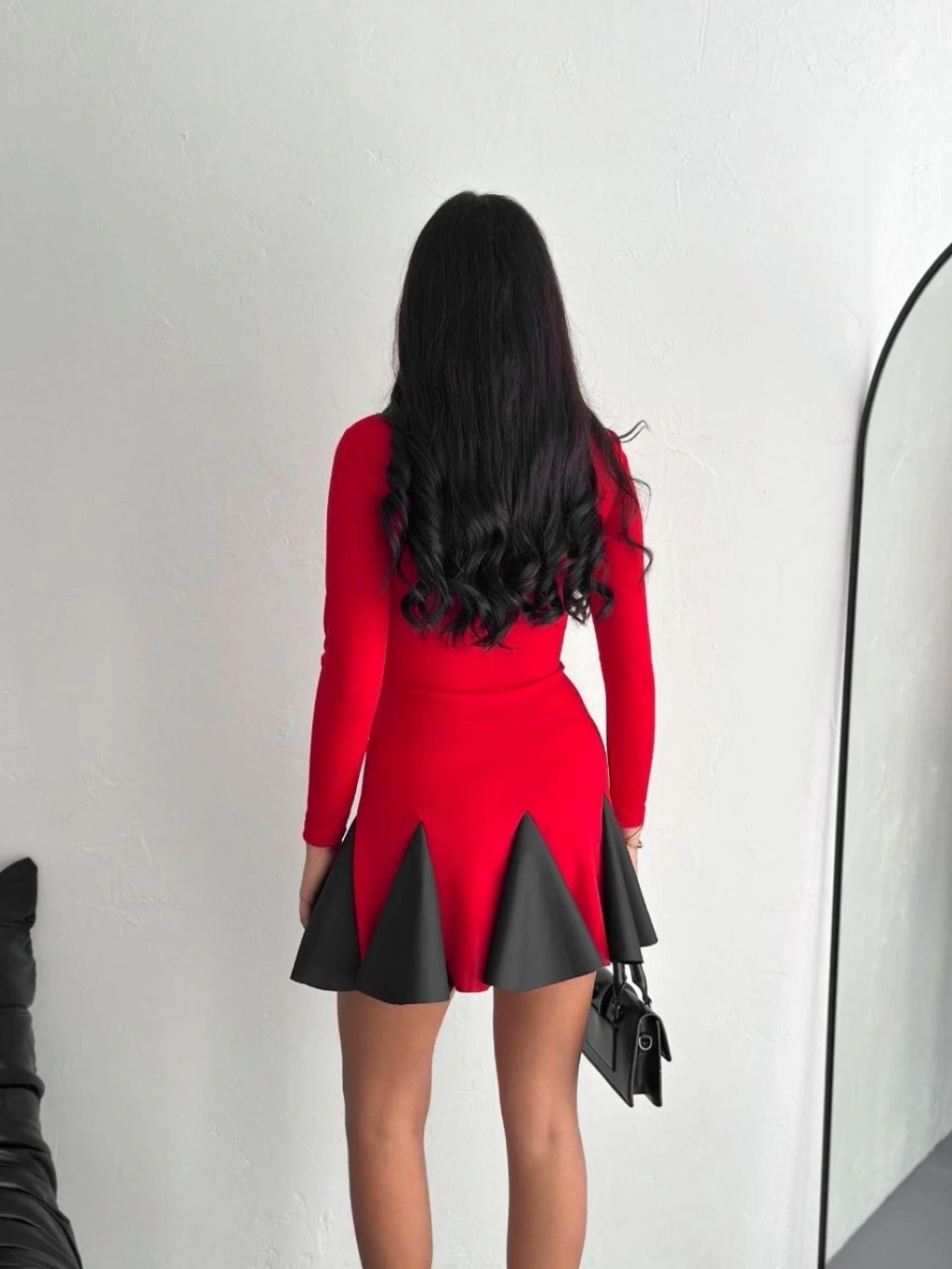 • Eteği kloş crep mini elbise s1267