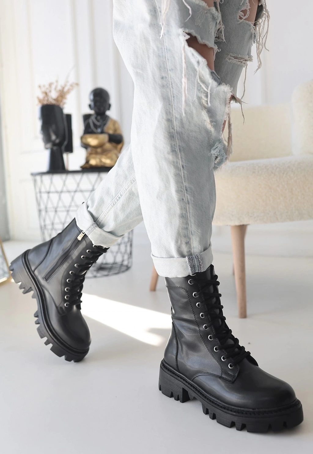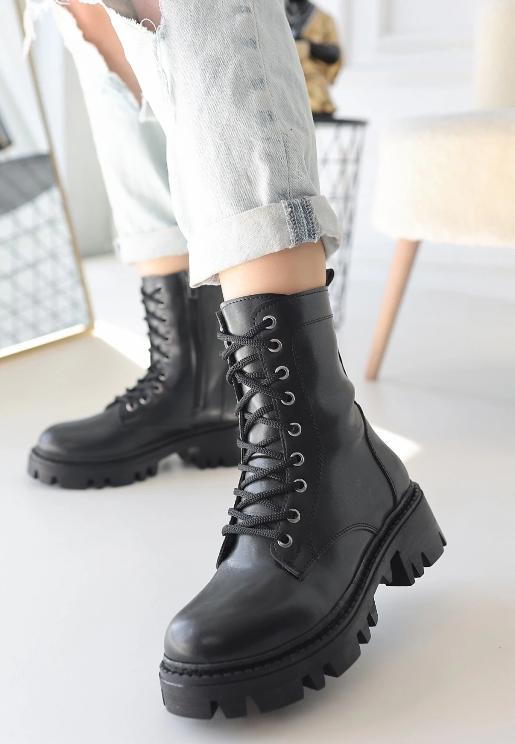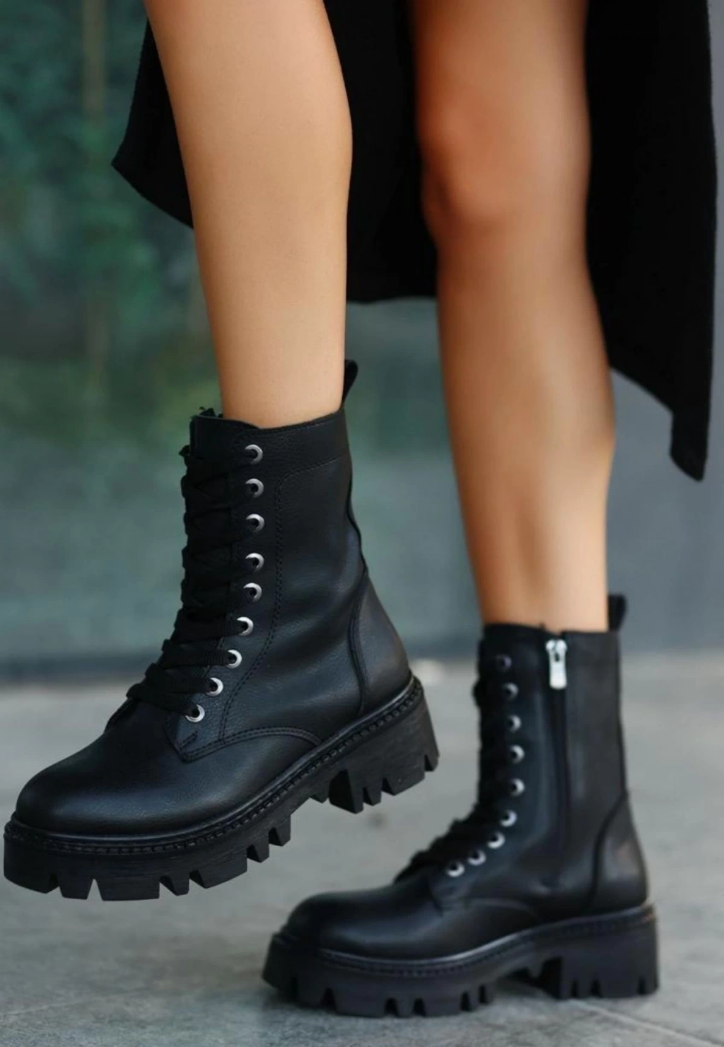• Flona Siyah Cilt Bağcıklı Bot