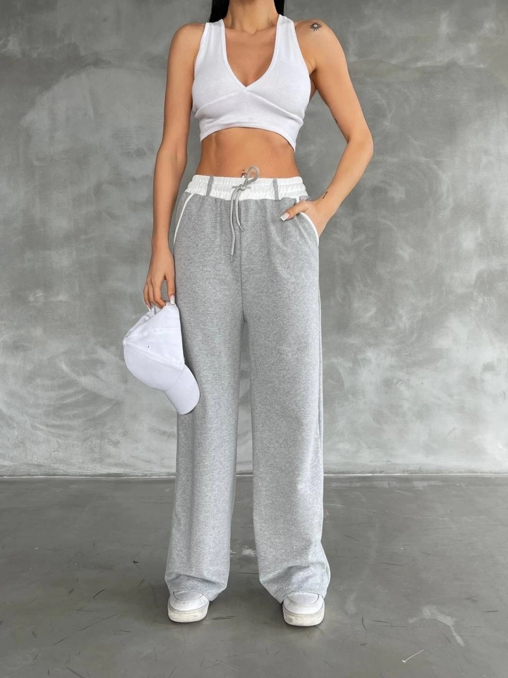 İnce ve zarif garni dokusu pantolonun şıklığını arttırırken, geniş paça tasarımı hareket özgürlüğü sağlar.