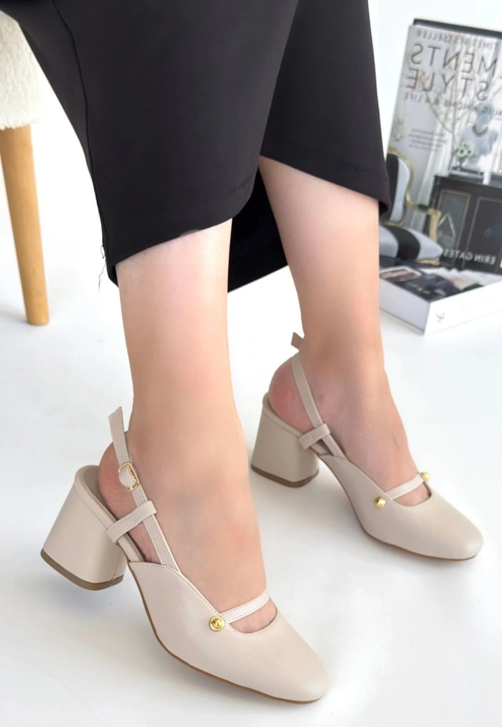 • Jecci Bej Cilt Topuklu Ayakkabı
