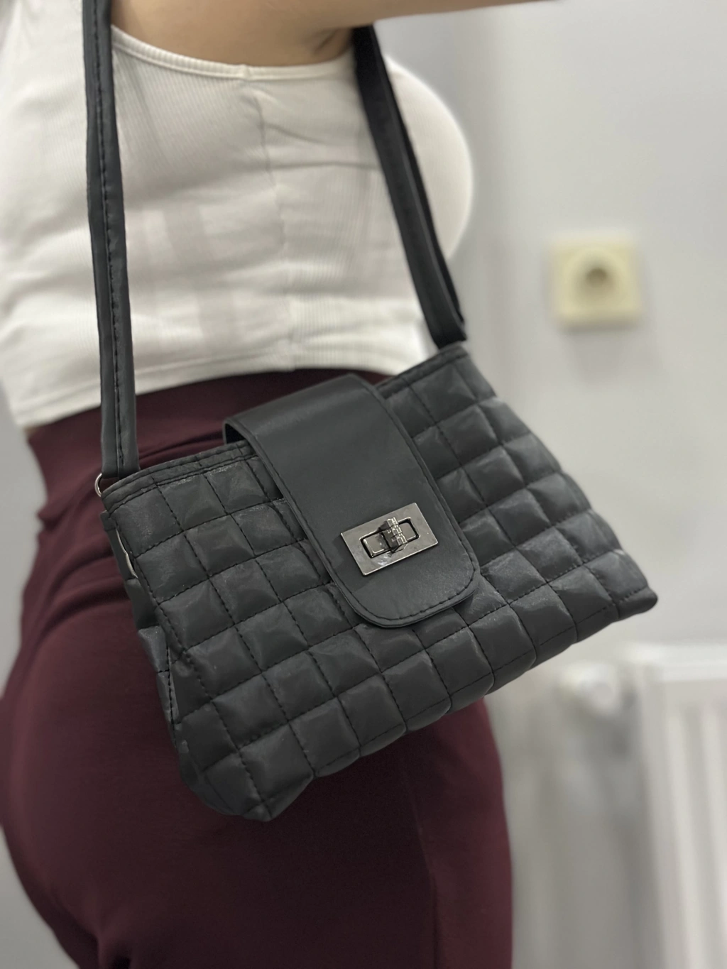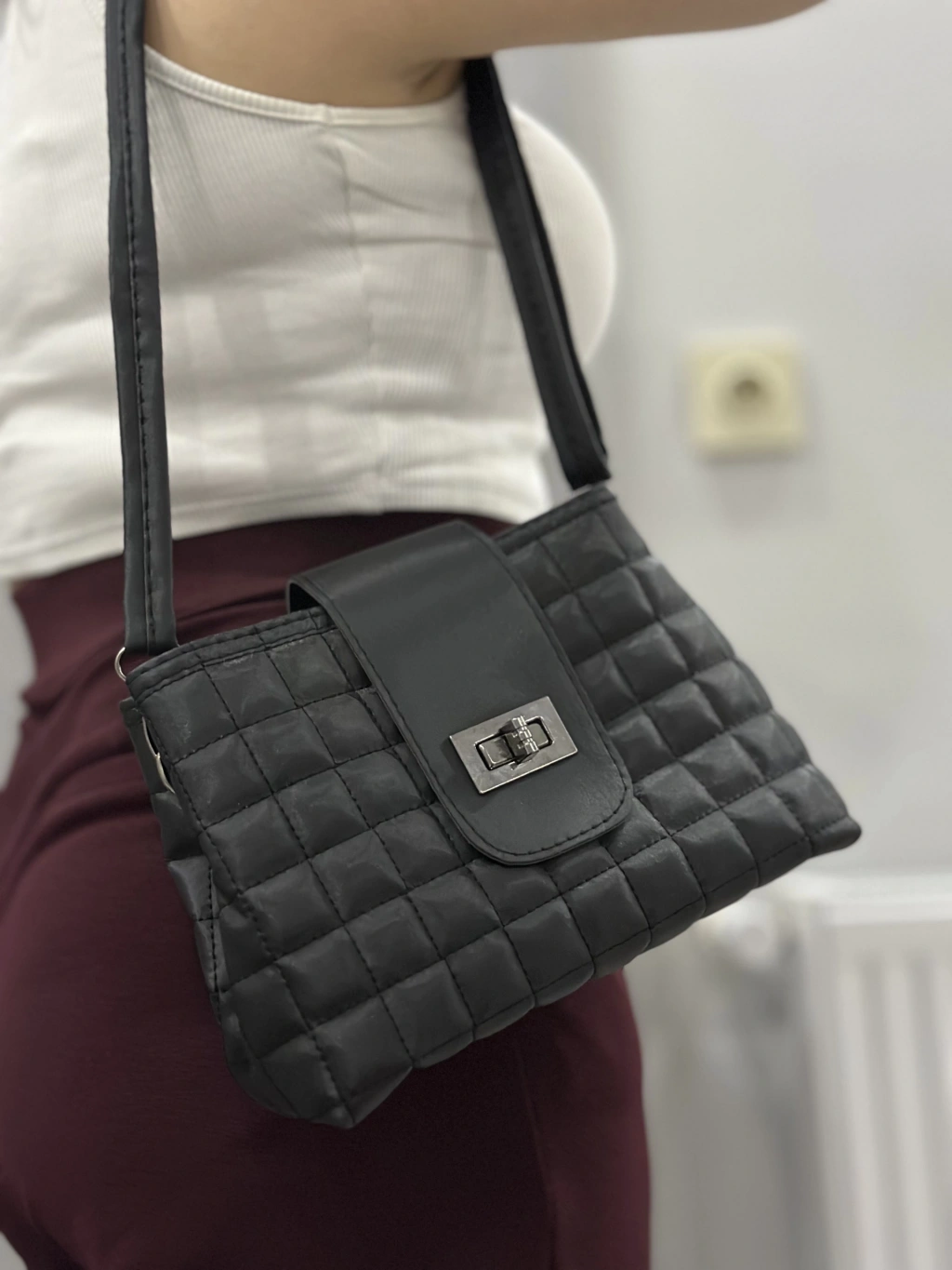 Kapaklı kapitone siyah cilt çanta