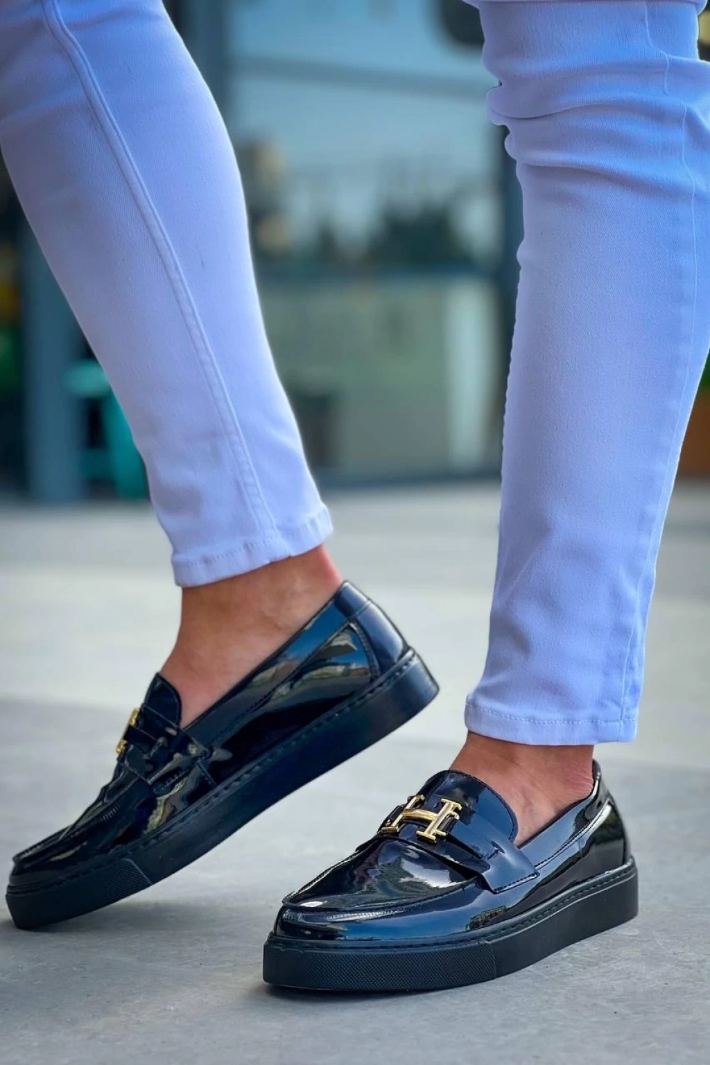 • KB-027 Kuback Bağcıksız Kömür Rugan H Günlük Erkek Ayakkabı