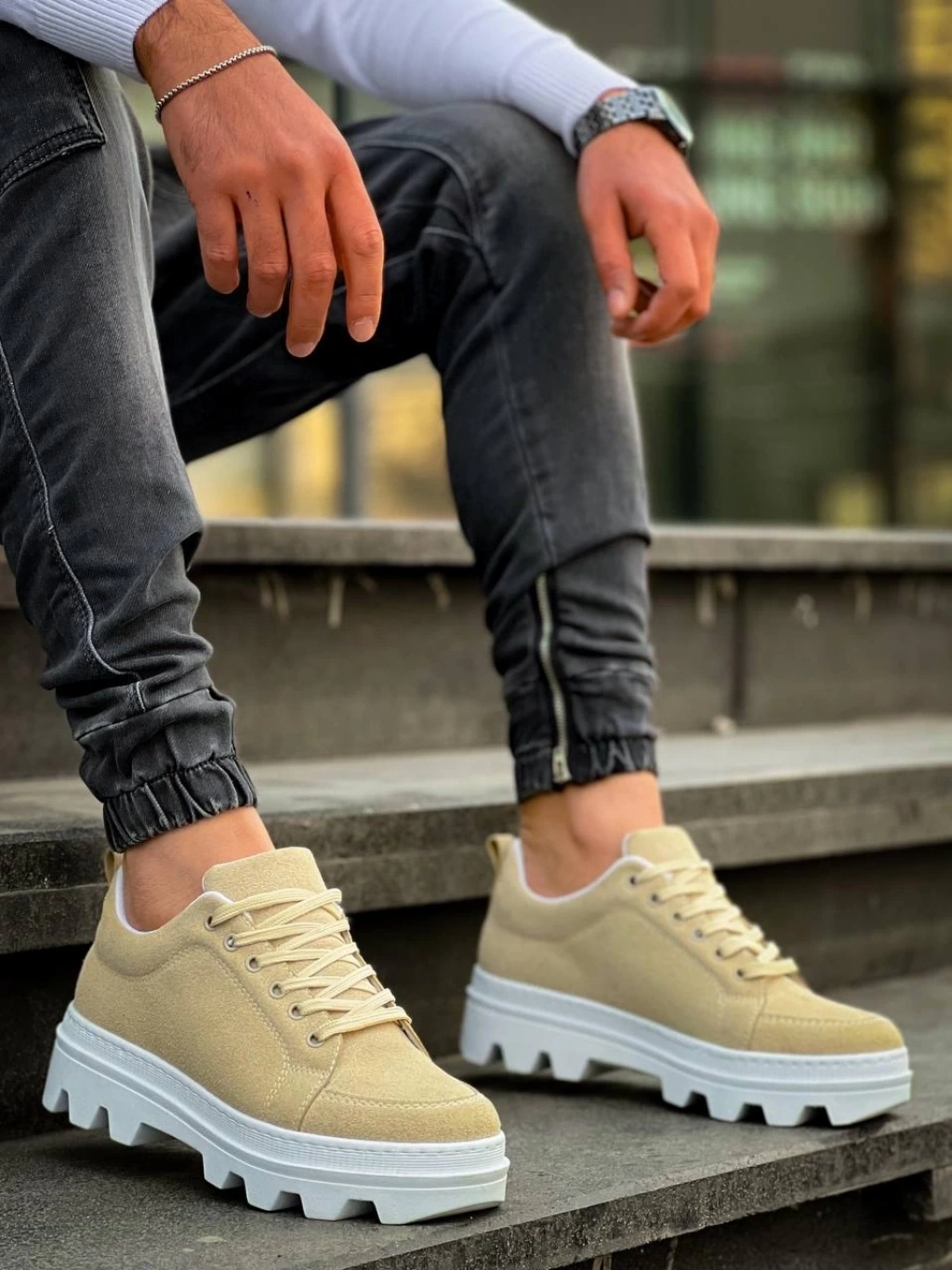 • KB-056 Kuback Bej Süet Beyaz Yüksek Taban Günlük Spor Ayakkabı