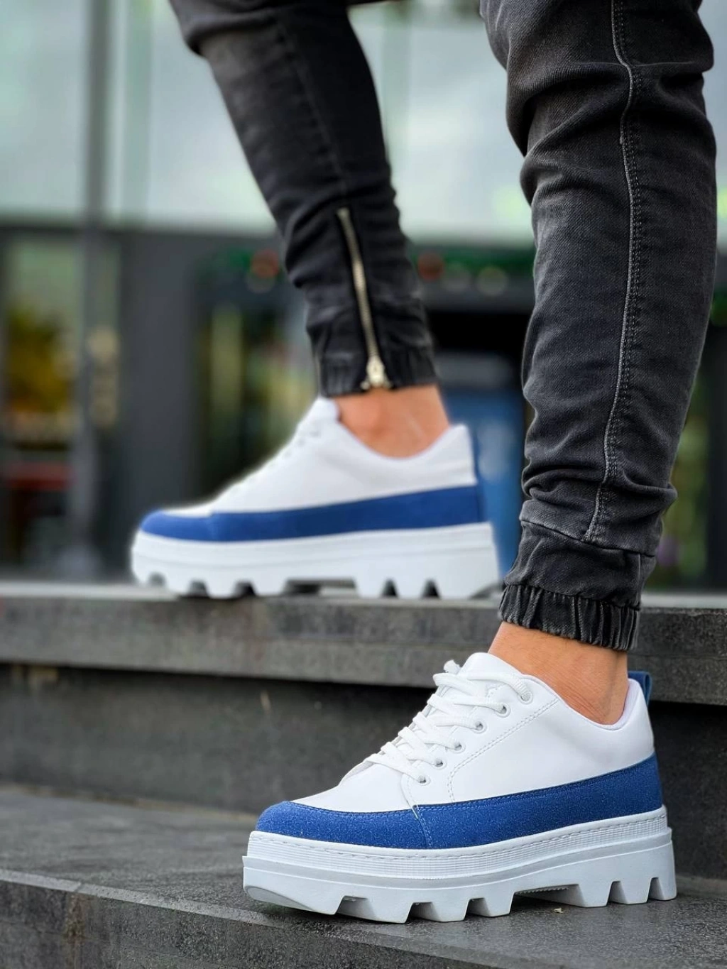 KB-056 Kuback Beyaz Mavi Detaylı Beyaz Yüksek Taban Günlük Spor Ayakkabı