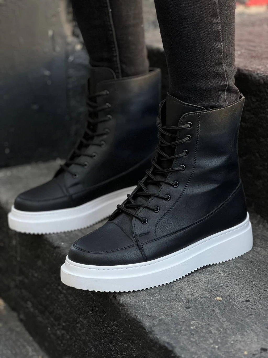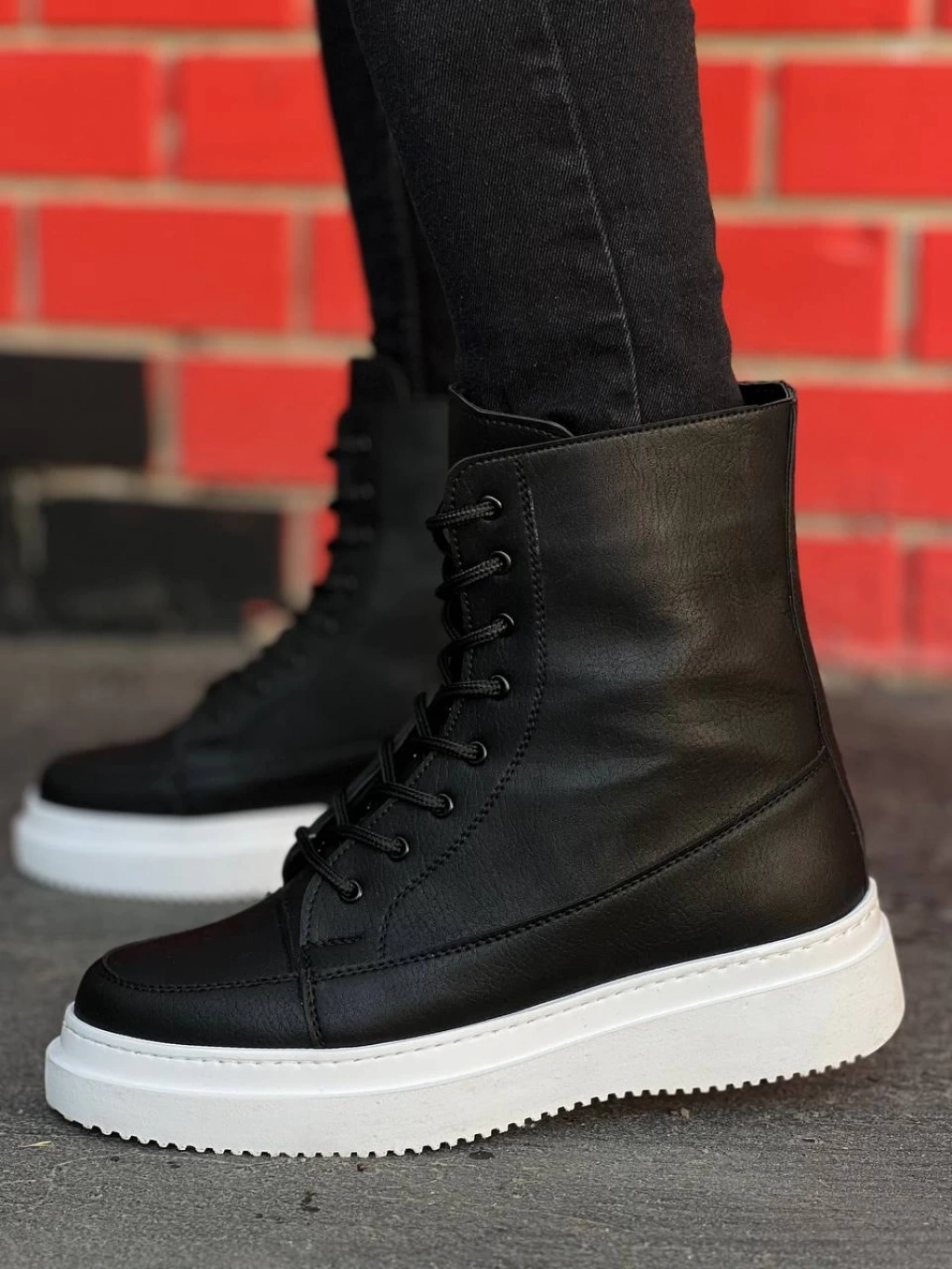 KB-0991 Kuback Siyah Cilt Yüksek Taban Bağcıklı Postal Bot