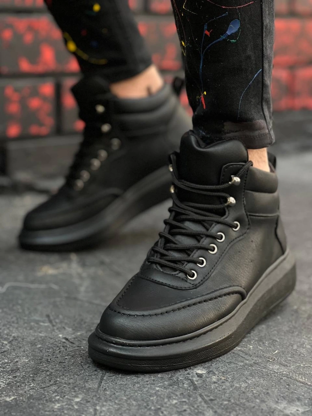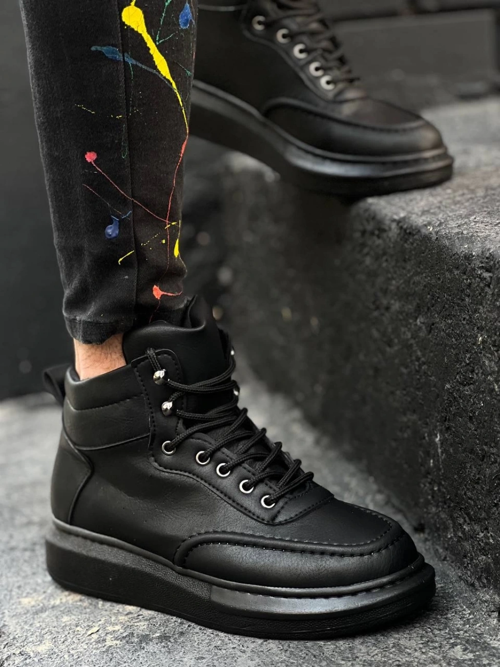 • KB-0994 Kuback Siyah Cilt Siyah Yüksek Taban Erkek Bilek Bot