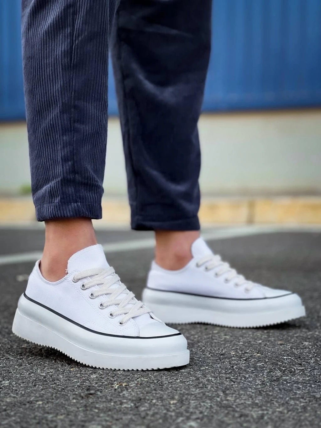 • KB-CX-3 Kuback Kısa Beyaz Keten Beyaz Yüksek Taban Spor Ayakkabı