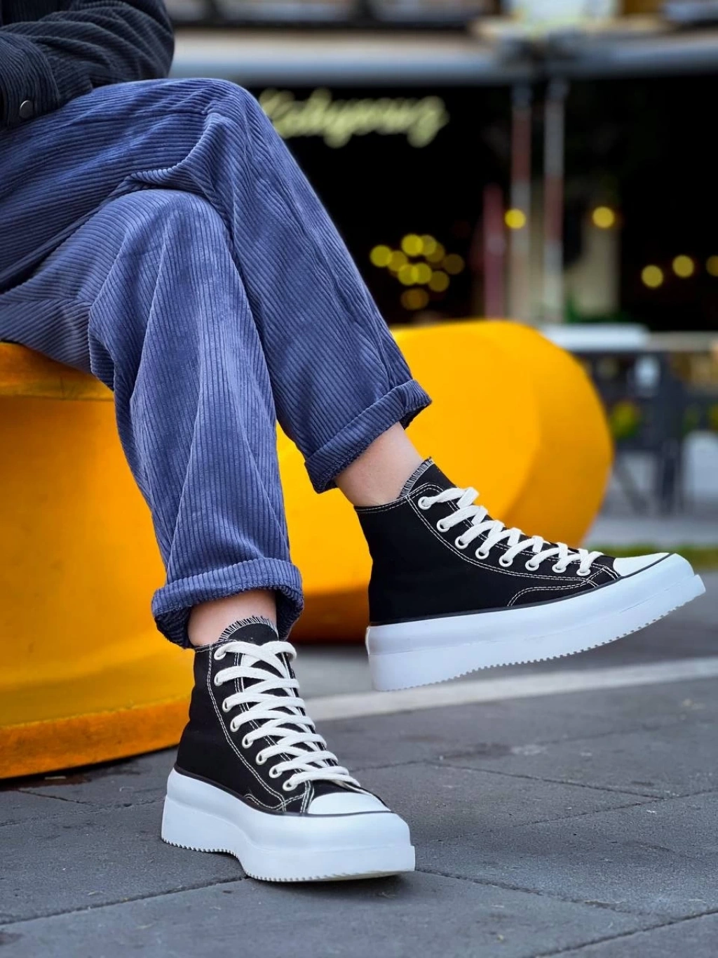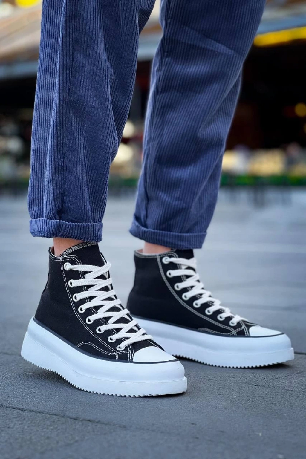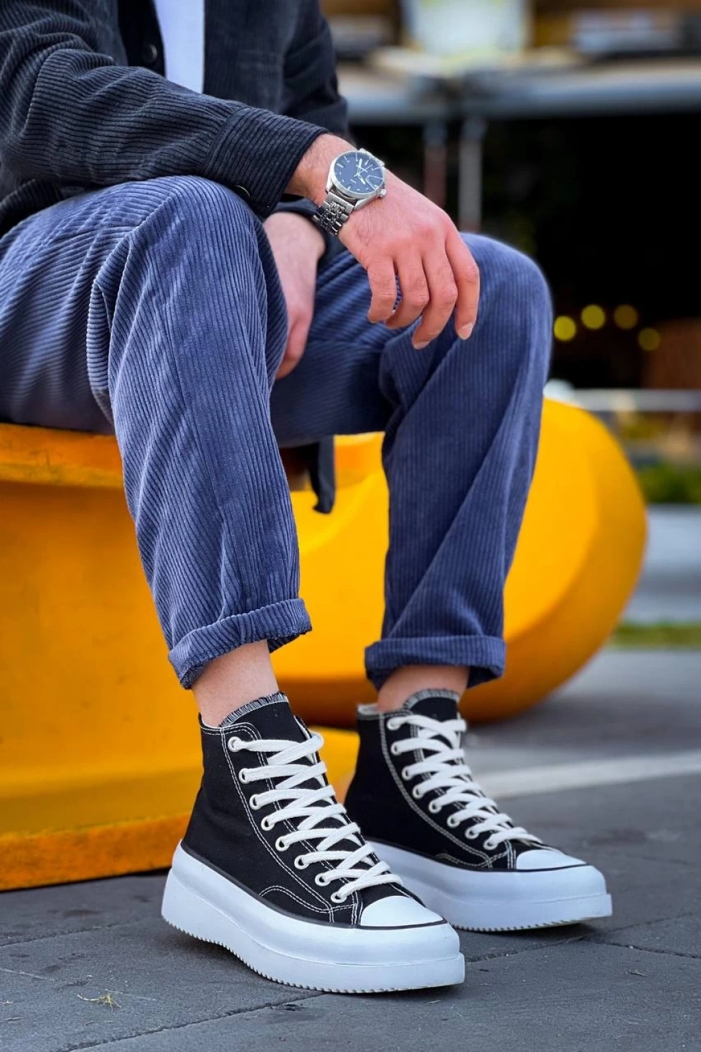 • KB-CX-3 Kuback Uzun Siyah Keten Beyaz Yüksek Taban Spor Ayakkabı