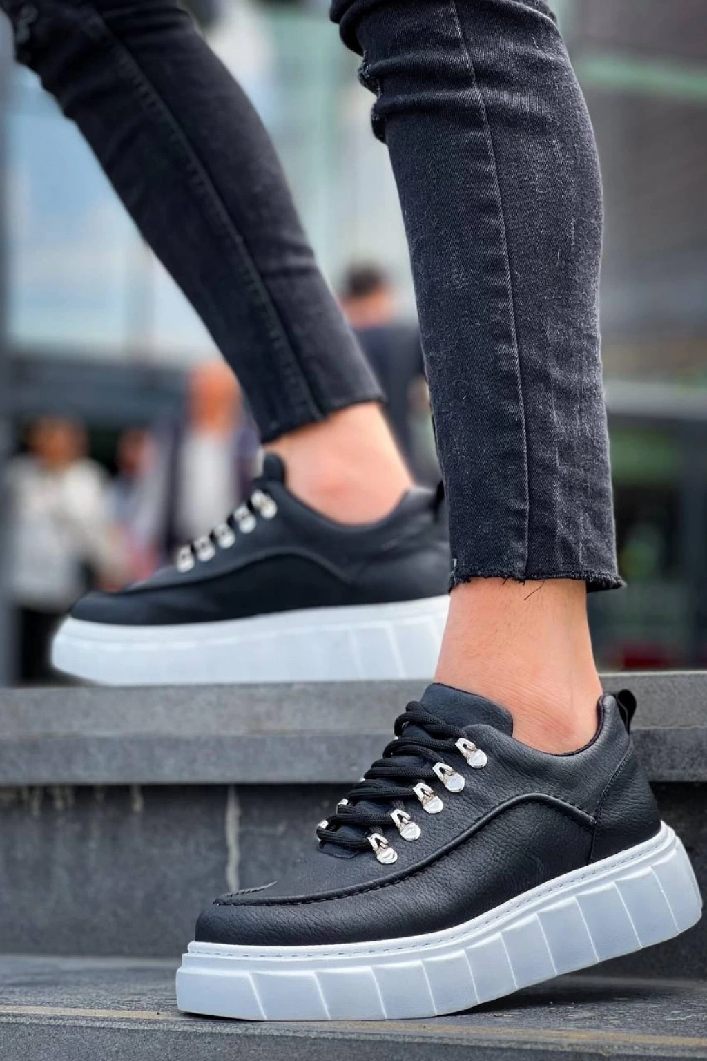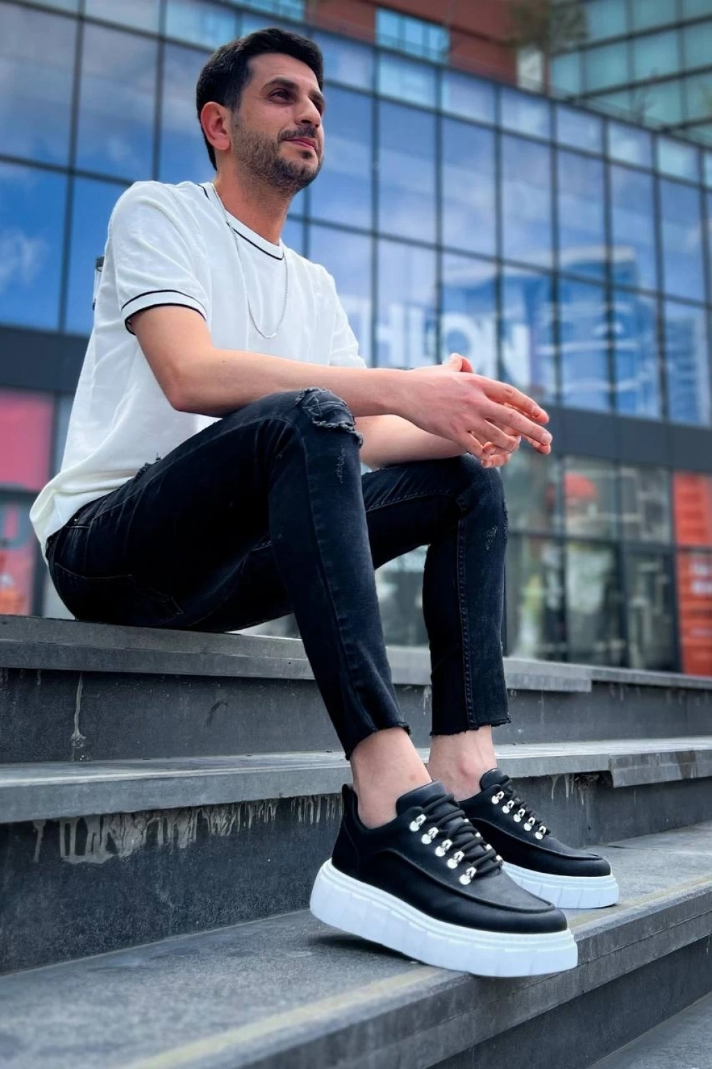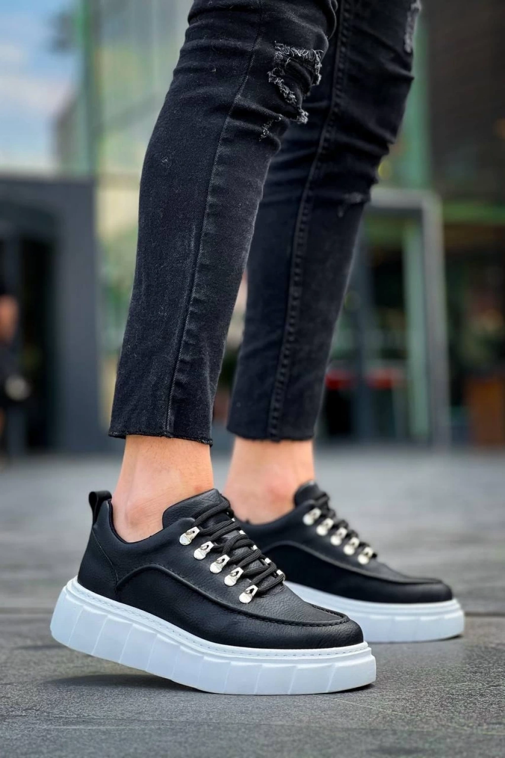 KB-X10 Kuback Siyah Cilt Beyaz Yüksek Taban Günlük Spor Ayakkabı