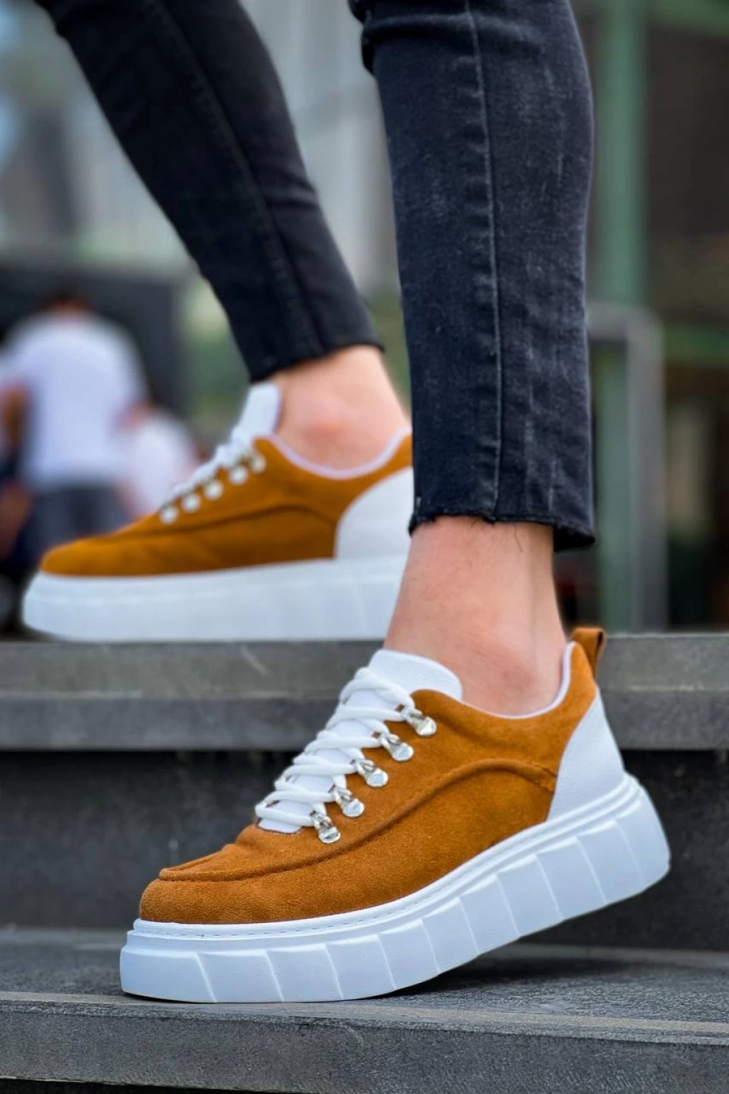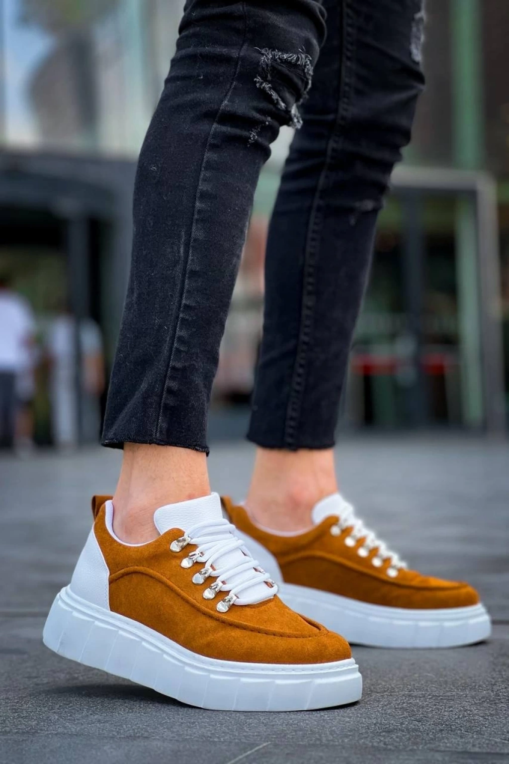 • KB-X10 Kuback Taba Süet Beyaz Yüksek Taban Günlük Spor Ayakkabı