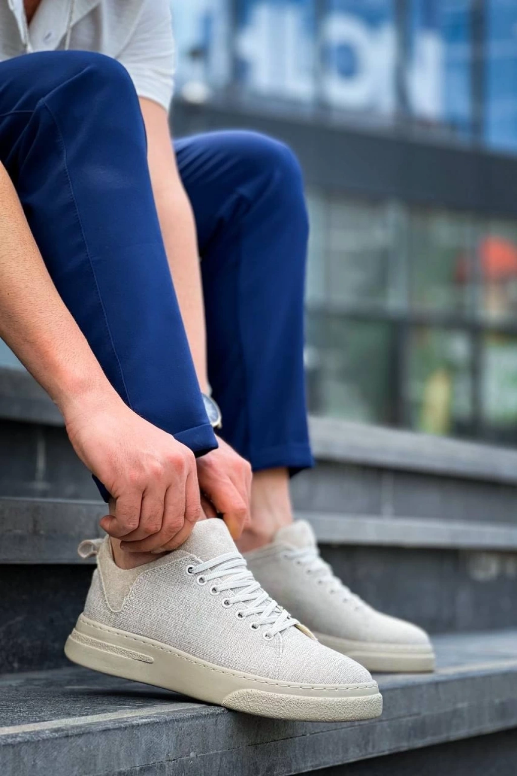 • KB-X204 Kuback Bej Keten Bej Yüksek Taban Günlük Erkek Spor Ayakkabı