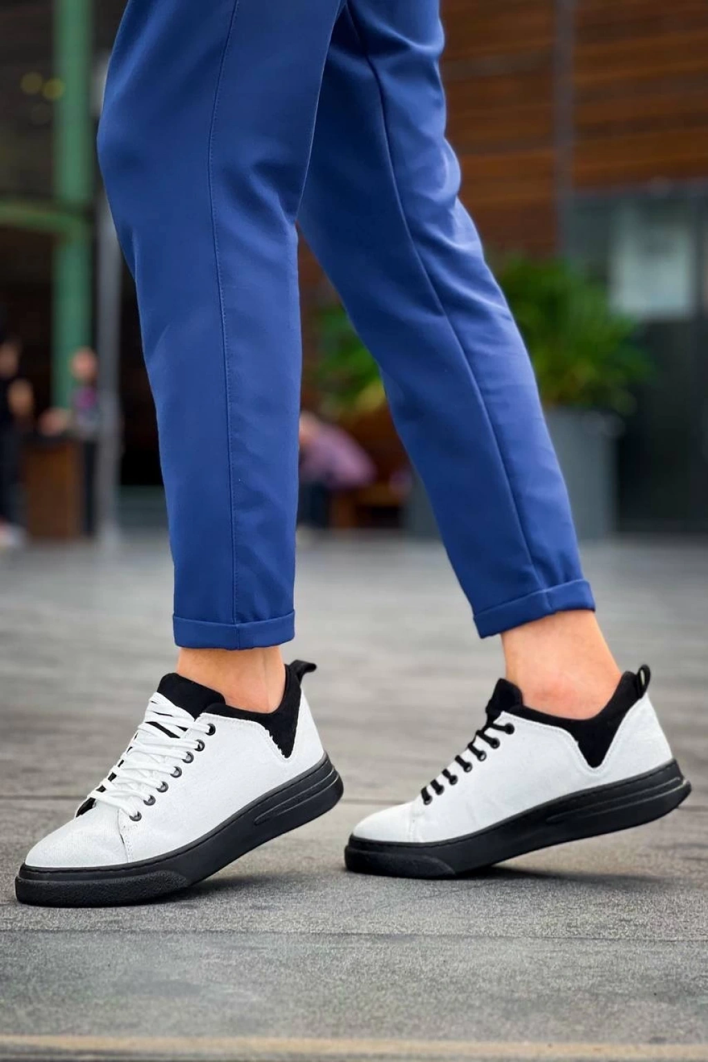 • KB-X204 Kuback Beyaz Siyah Keten Siyah Yüksek Taban Günlük Erkek Spor Ayakkabı
