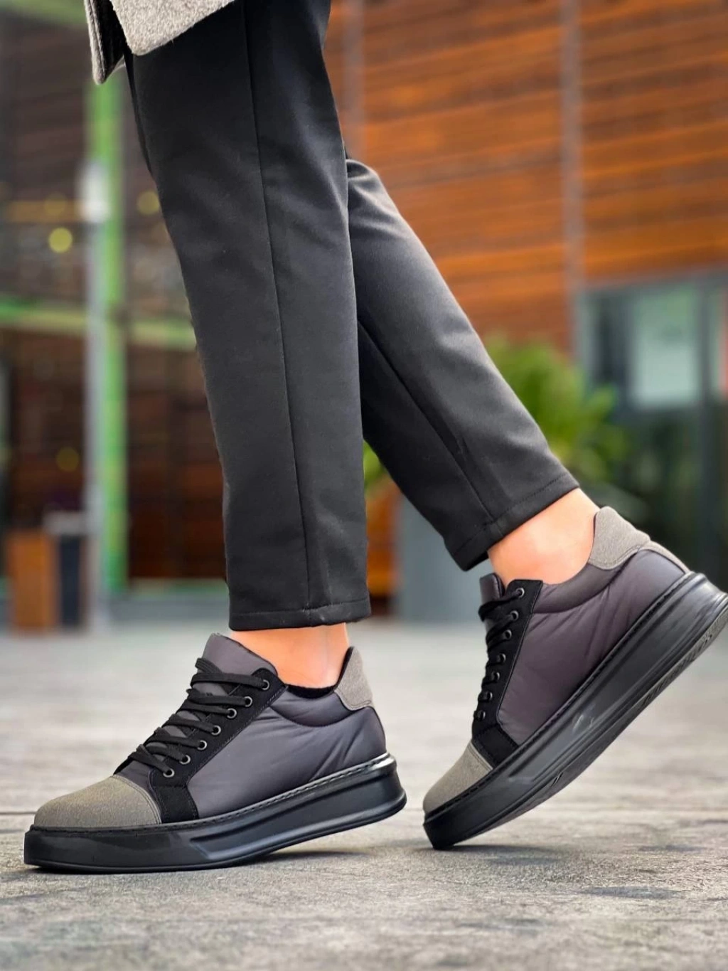 KB-X46 Kuback Siyah Gri Yüksek Siyah Taban Günlük Spor Ayakkabı