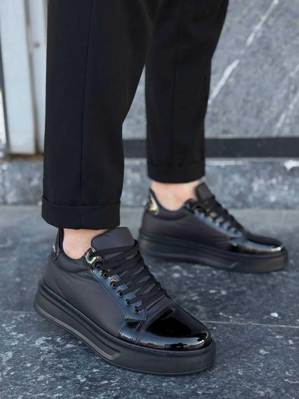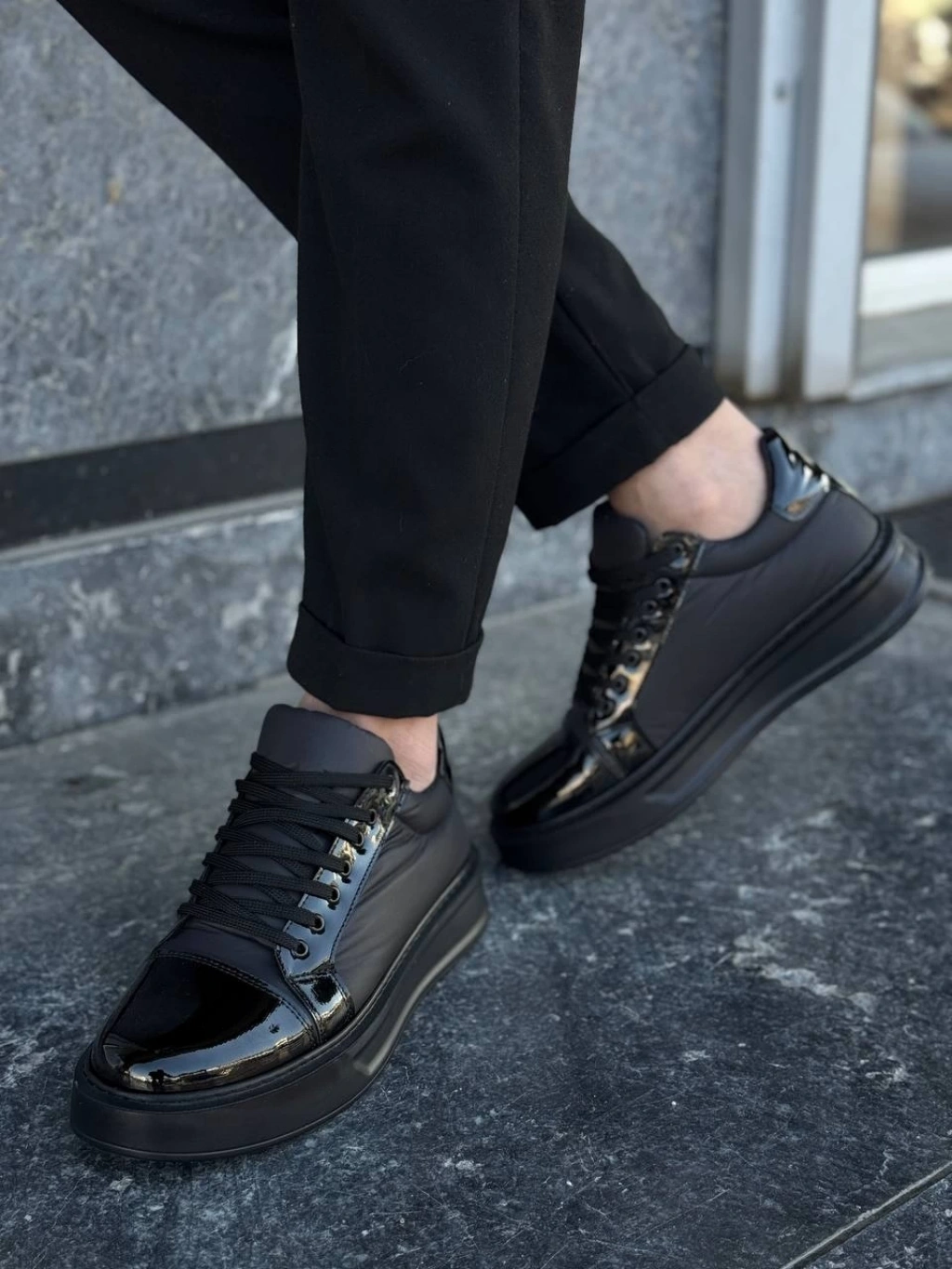 • KB-X46 Kuback Siyah Rugan Yüksek Siyah Taban Günlük Spor Ayakkabı