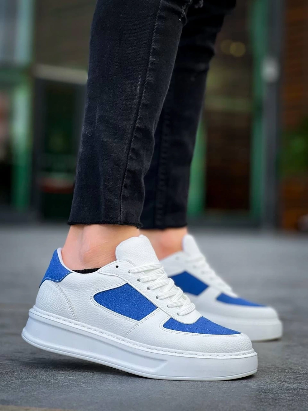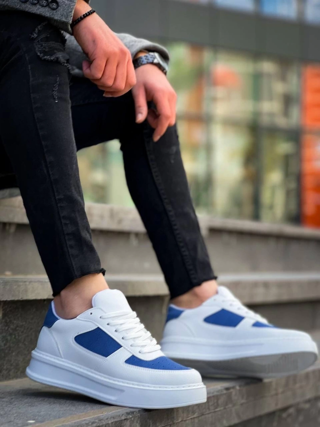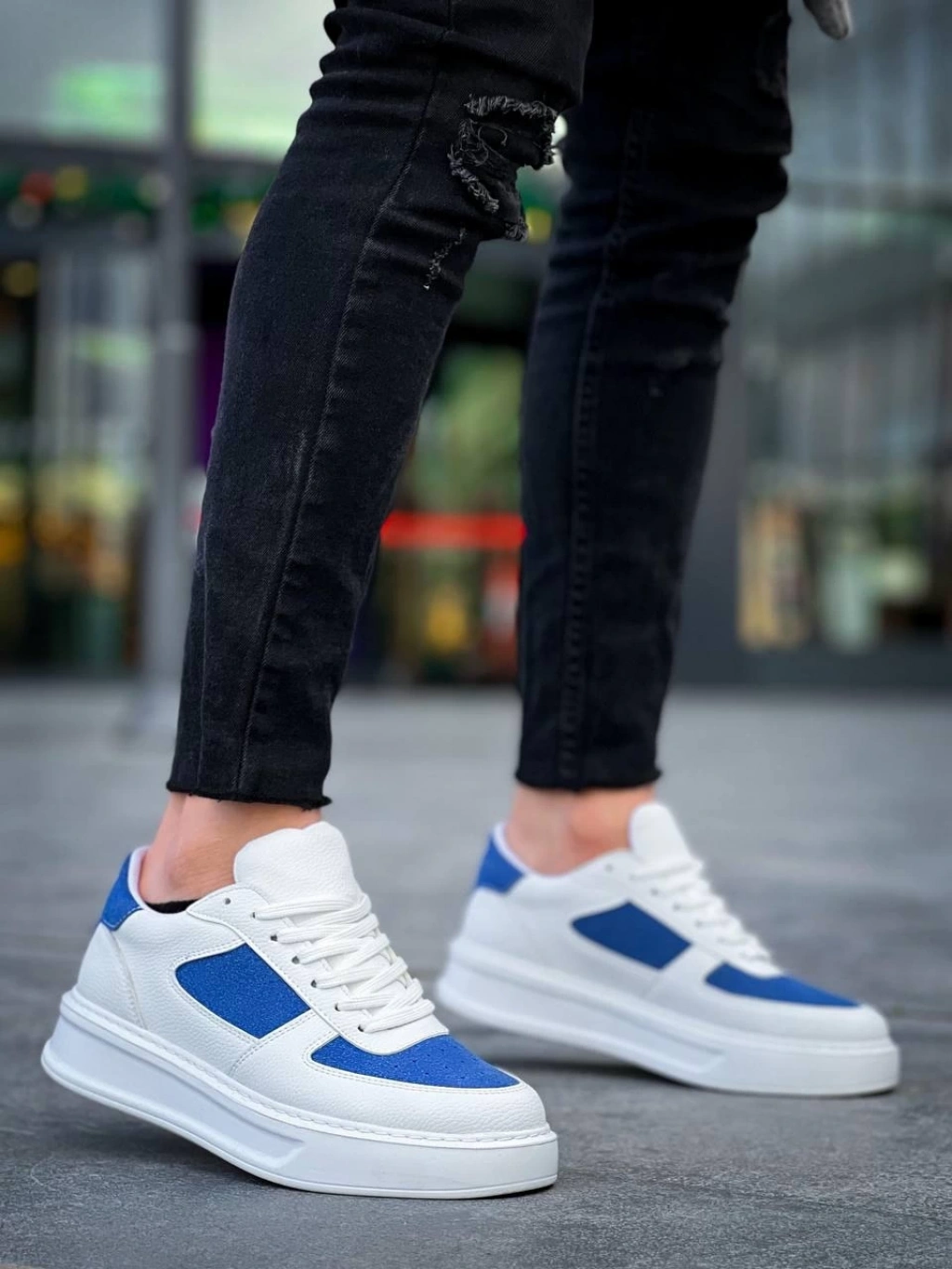 • KB-X8 Kuback Beyaz Cilt Mavi Süet Detaylı Beyaz Yüksek Taban Günlük Spor Ayakkabı