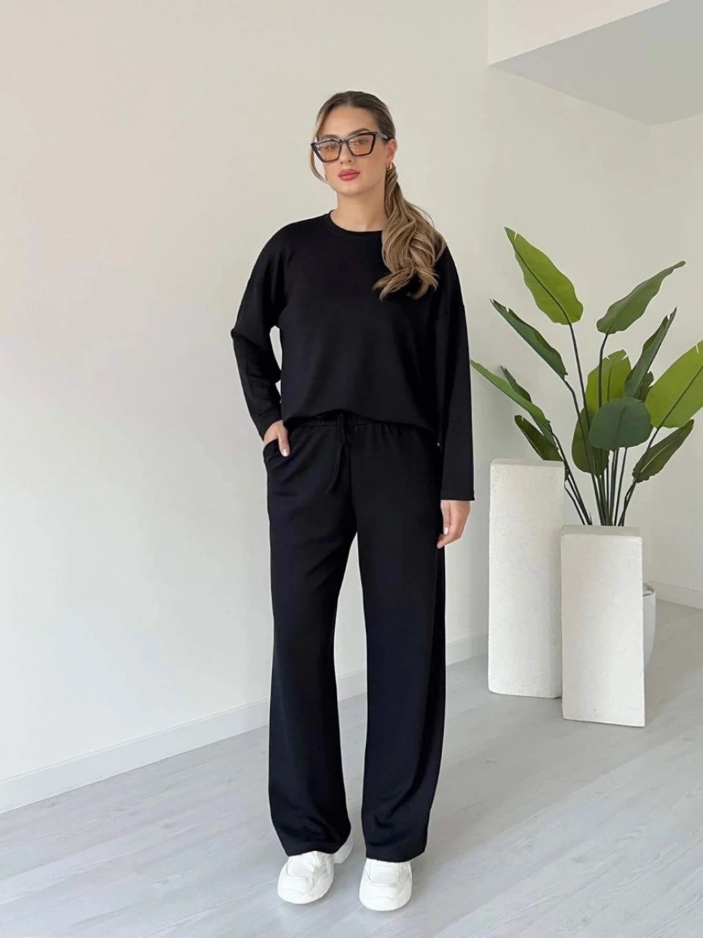şık ve rahat tasarımıyla öne çıkan Siyah Kollu Modal Takım, kadın giyim koleksiyonunda yerini alıyor.