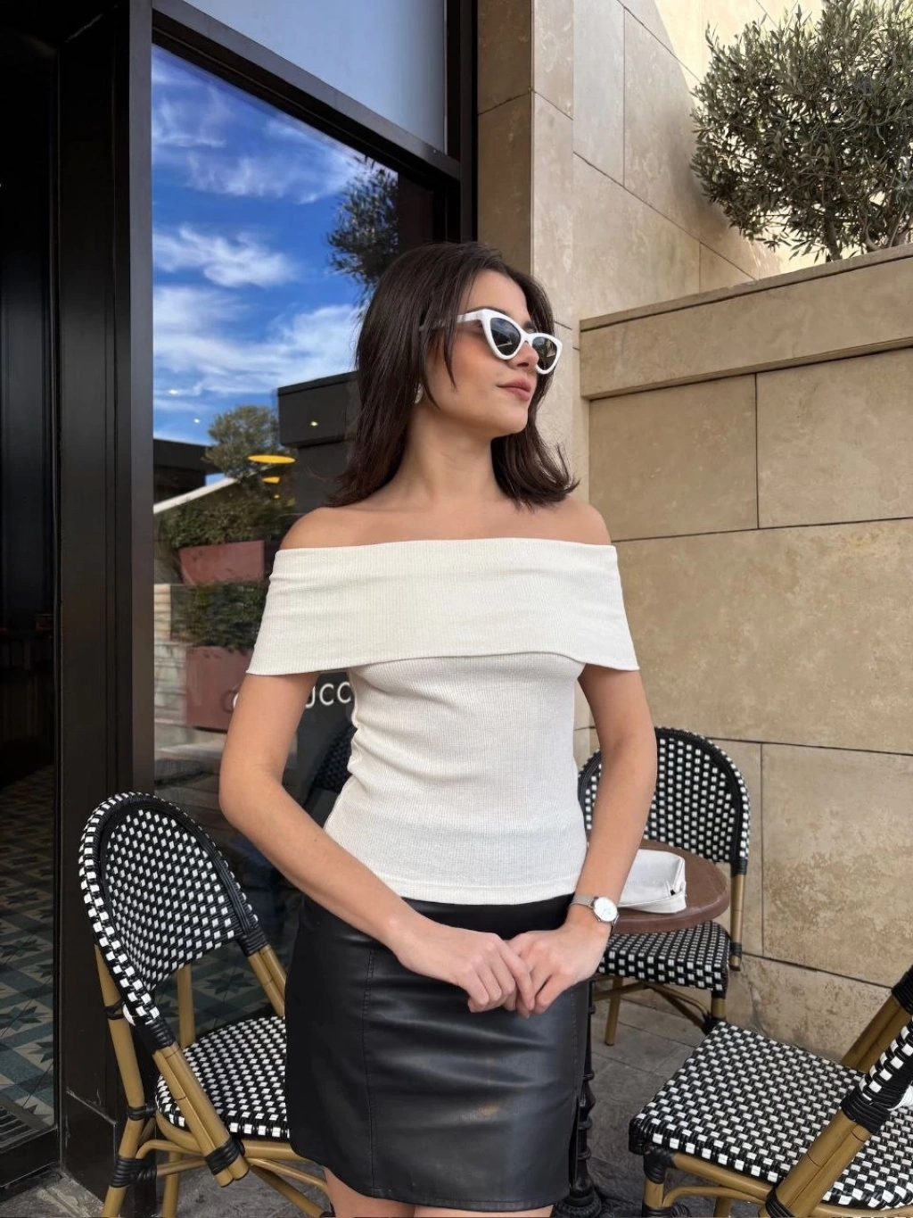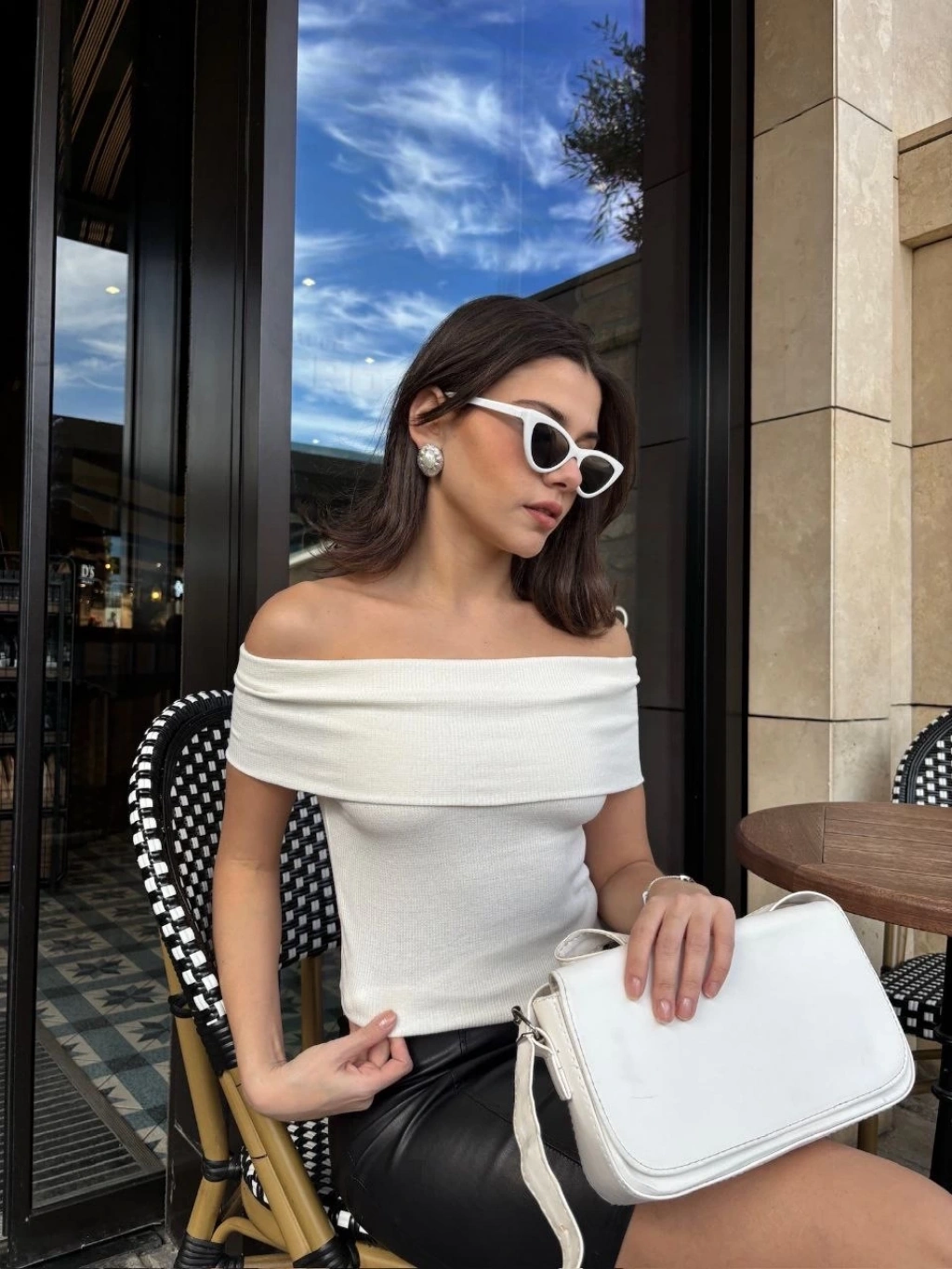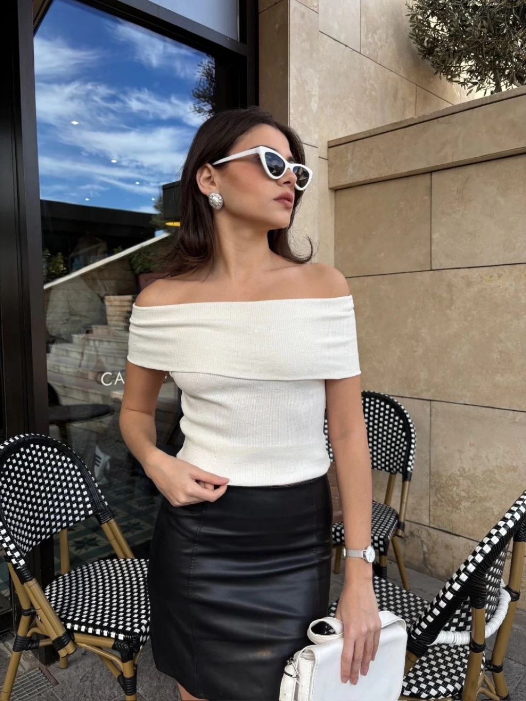 Günlük kullanıma uygun olan bu bluz, denim pantolonlarınızdan eteklerinize kadar birçok kombinasyon için idealdir. KAZAX Madonna yaka sıfır kol bluzu şimdi keşfedin!