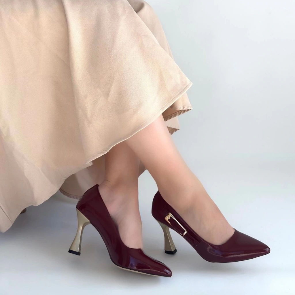 • Motya Bordo Rugan Topuklu Ayakkabı
