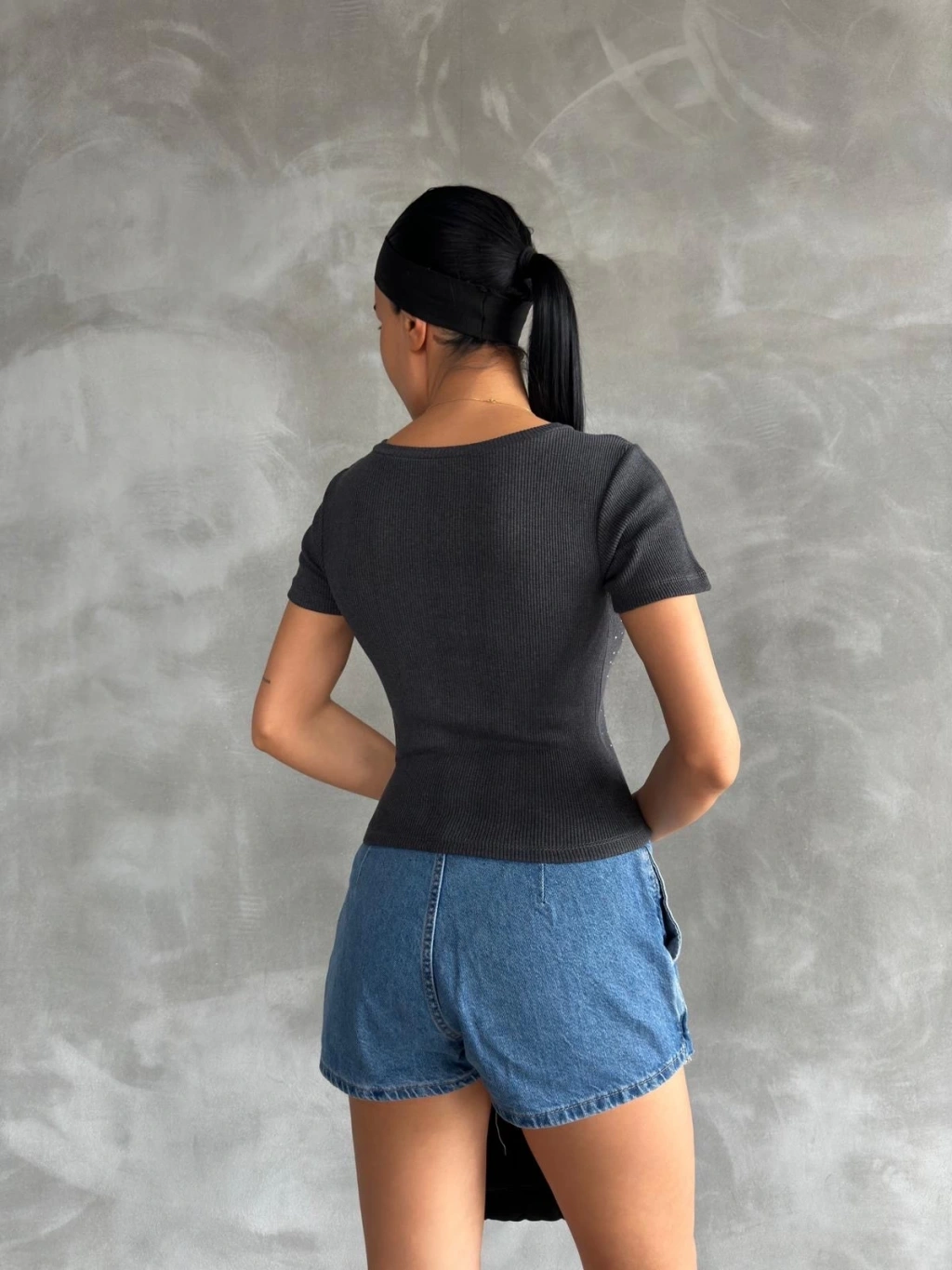 Şıklık ve rahatlığı aynı anda sunan Önü Taşlı Antrasit Bluz S3512, gardırobunuzun vazgeçilmezi olmaya aday!