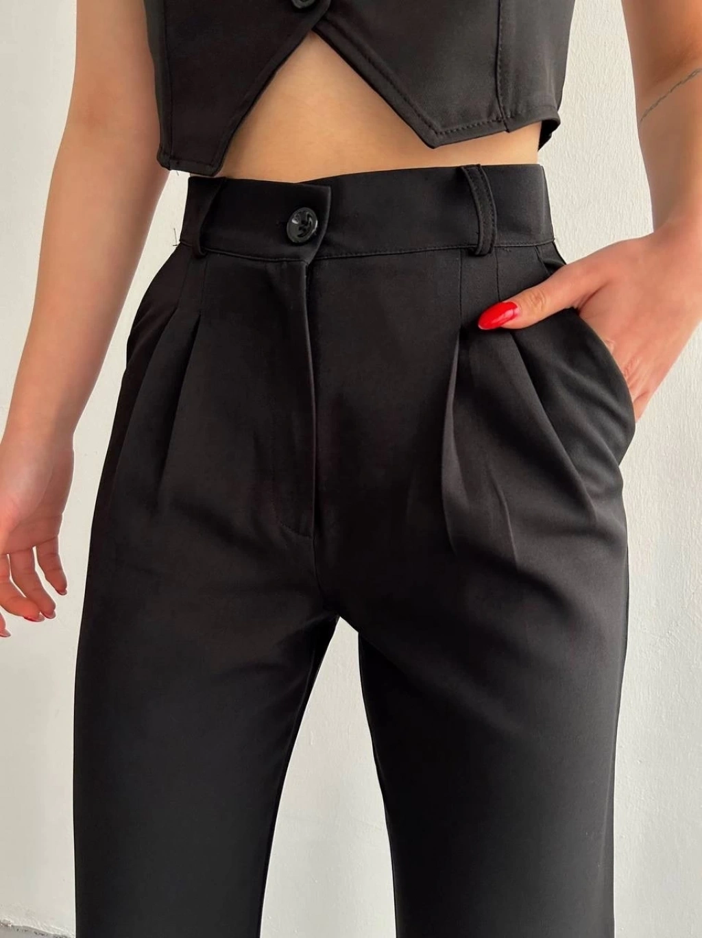 Palazzo pantolon siyah s23211, şıklığı ve rahatlığı bir arada sunar. Klasik siyah rengi ile her kombinle uyum sağlayan bu pantolon, gardırobunuzun vazgeçilmez parçalarından biri olmaya aday.