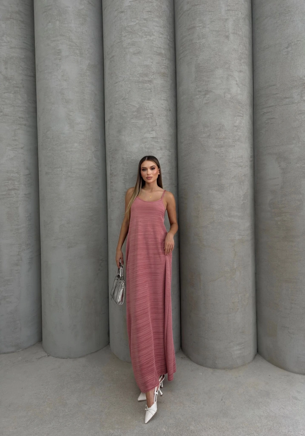 • Piliseli uzun elbise