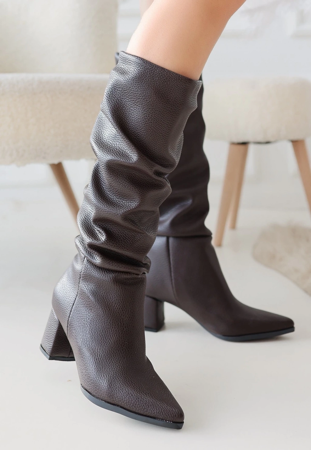 Detay: Topuklu Diz Altı Körüklü Çizme
