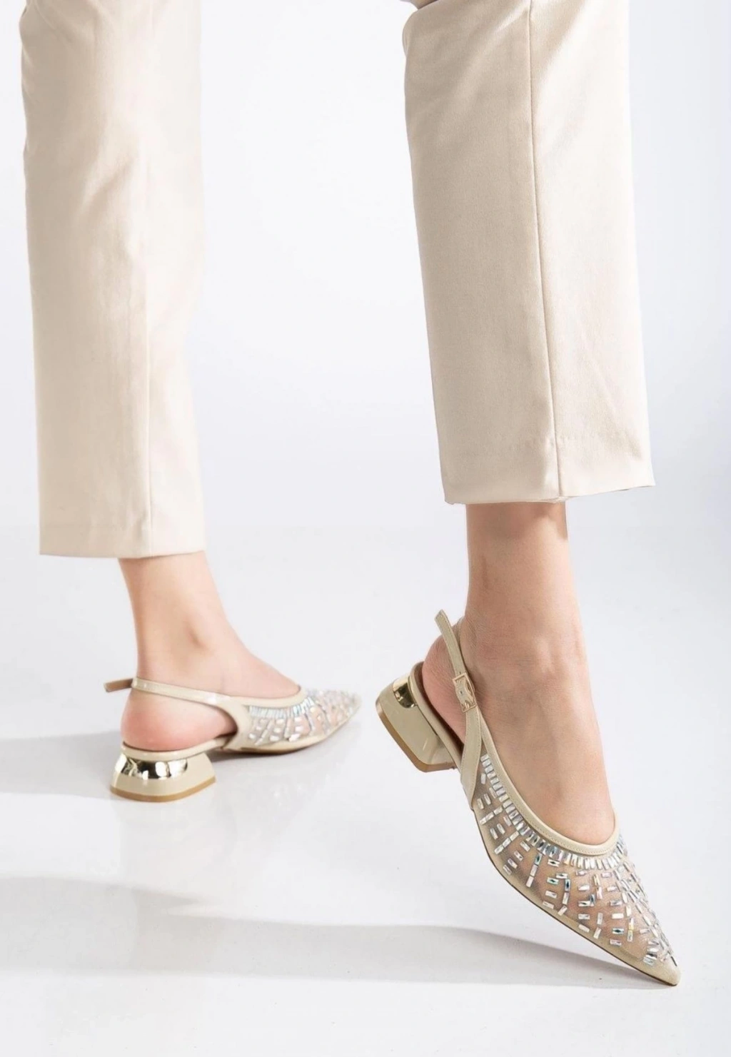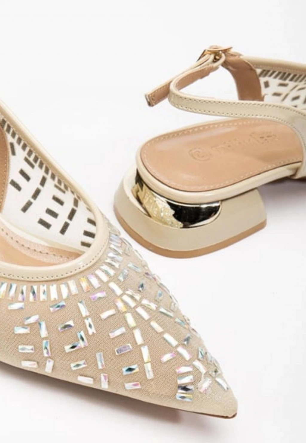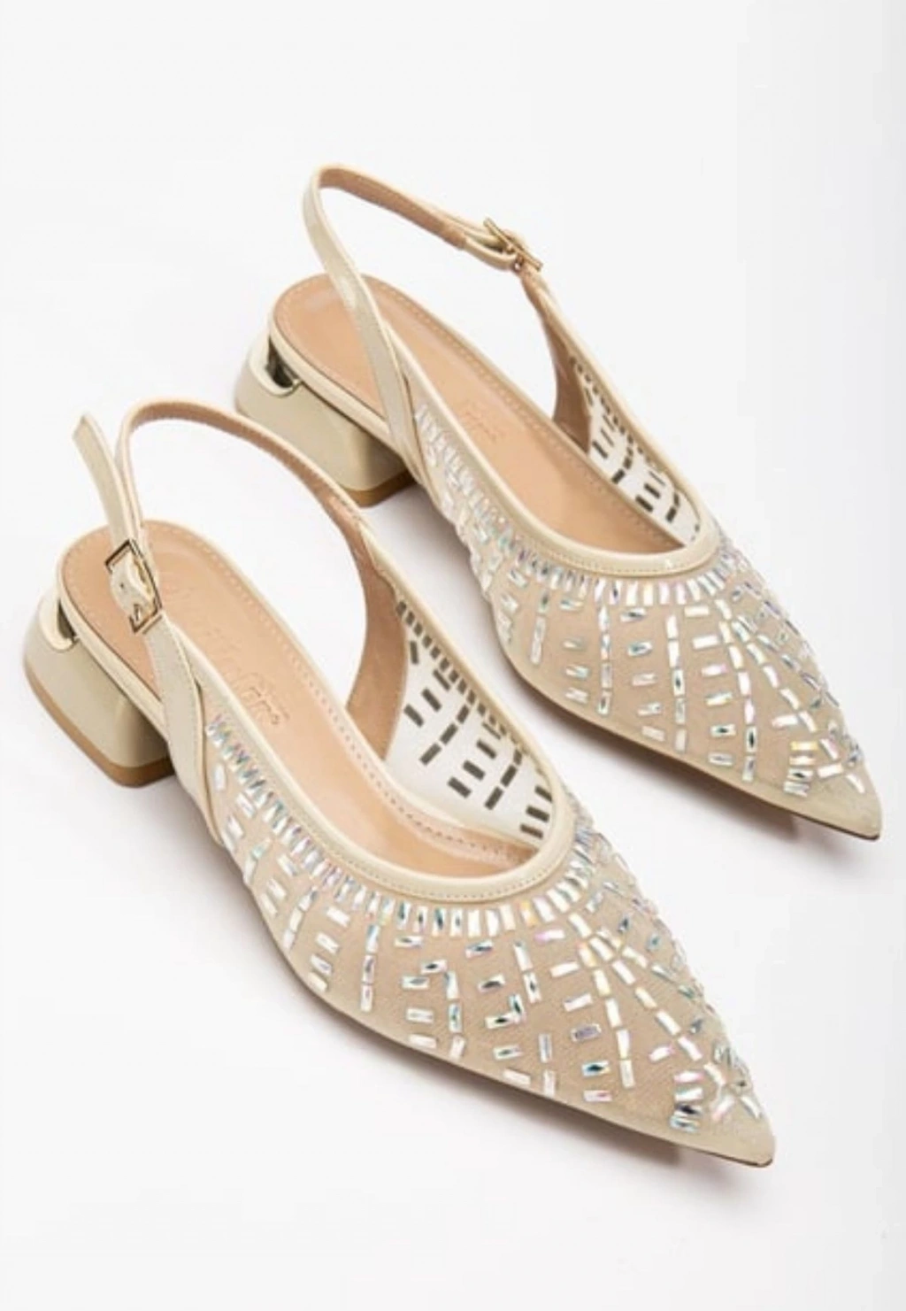 • Piyar Bej Taşlı Topuklu Ayakkabı