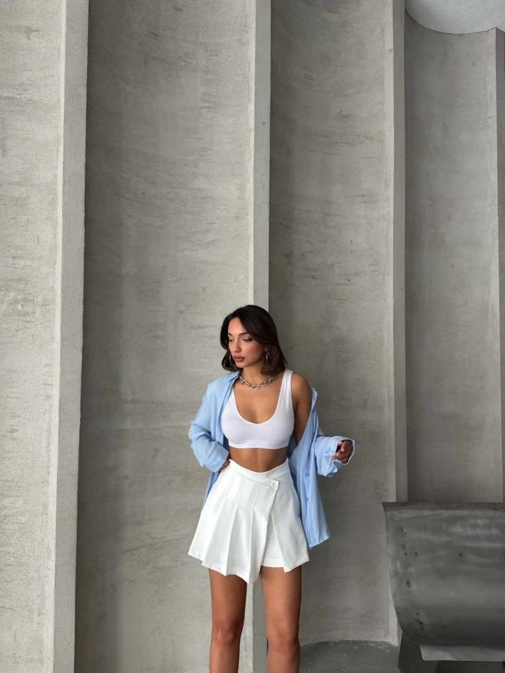 KAZAX pliseli şort etek, şıklığı ve rahatlığı bir arada sunar.