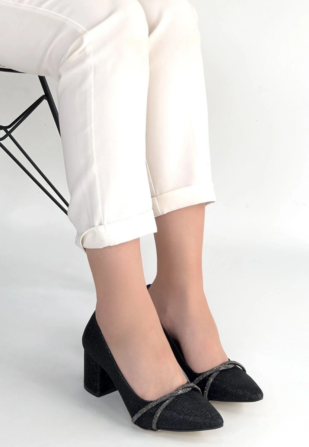 • Rewin Siyah Simli Cilt Topuklu Ayakkabı