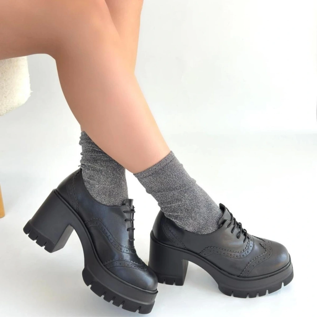 • Tiwer Siyah Cilt Dolgu Topuk Ayakkabı