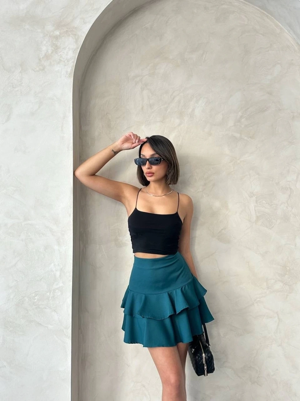Bu şık ve göz alıcı yeşil eteği günlük şıklığınızda veya özel günlerde tercih edebilir, tarzınıza şıklık katabilirsiniz.
