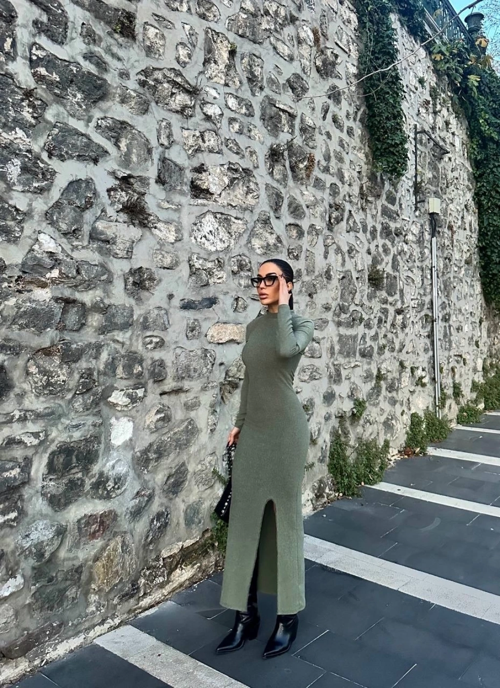 Yırtmaç detayı ile hareketli bir stil oluşturur.